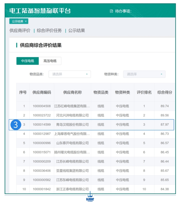 國(guó)家電網(wǎng)公司近期發(fā)布的2023年下半年互聯(lián)供應(yīng)商綠色智造云網(wǎng)(EIP)接入能力與應(yīng)用質(zhì)量綜合評(píng)價(jià)中,青島漢纜股份有限公司憑借其在高壓電纜品類(lèi)的卓越表現(xiàn)榮登榜首,并在中壓電纜品類(lèi)中榮獲第三名佳績(jī),充分展示了公司在推進(jìn)綠色智能制造和“云監(jiān)造”業(yè)務(wù)方面的強(qiáng)大實(shí)力與領(lǐng)導(dǎo)地位。